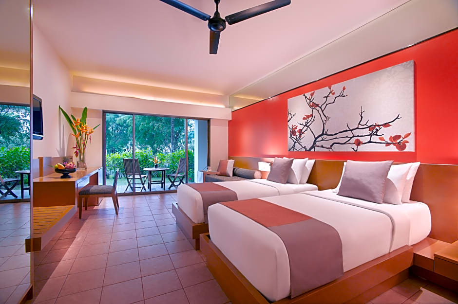 Features 2 single beds and a balcony overlooking South China Sea or the garden.